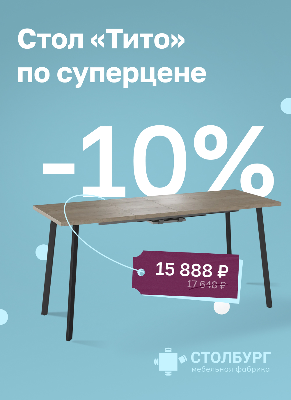 Комплект Стол МИТЧ HPL 960(+300+300)*600 (ФОРМА ТИТО) Комплект ножек ТИТО металл Черный Матовый м